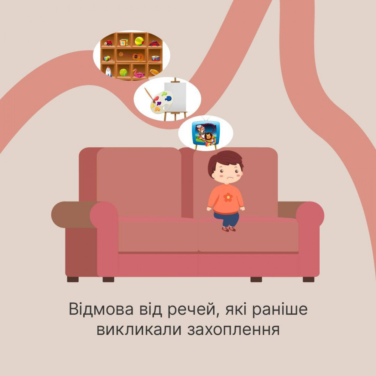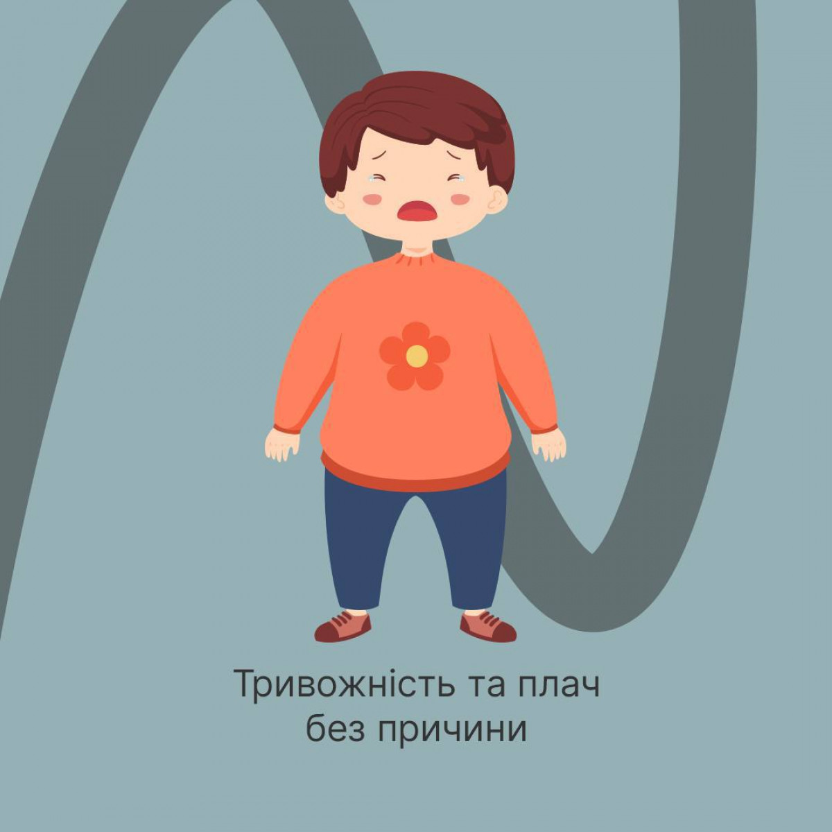 "Змінилася поведінка з однолітками: зазвичай дитина гралася в компанії на майданчику, а тепер усамітнюється в куточку. Перестали подобатися звичні приємні речі, наприклад мультфільми, від яких раніше малеча була в захваті. Виникли проблеми зі сном, незрозуміла тривожність і плач час від часу без зрозумілої причини".