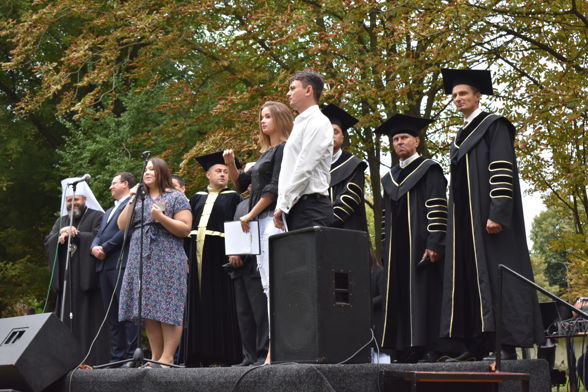Першим новоспечених вихованців закладу привітав ректор університету Петро Савчук. Під час своєї промови він зауважив, що дружня університетська родина з радістю приймає молоде покоління.