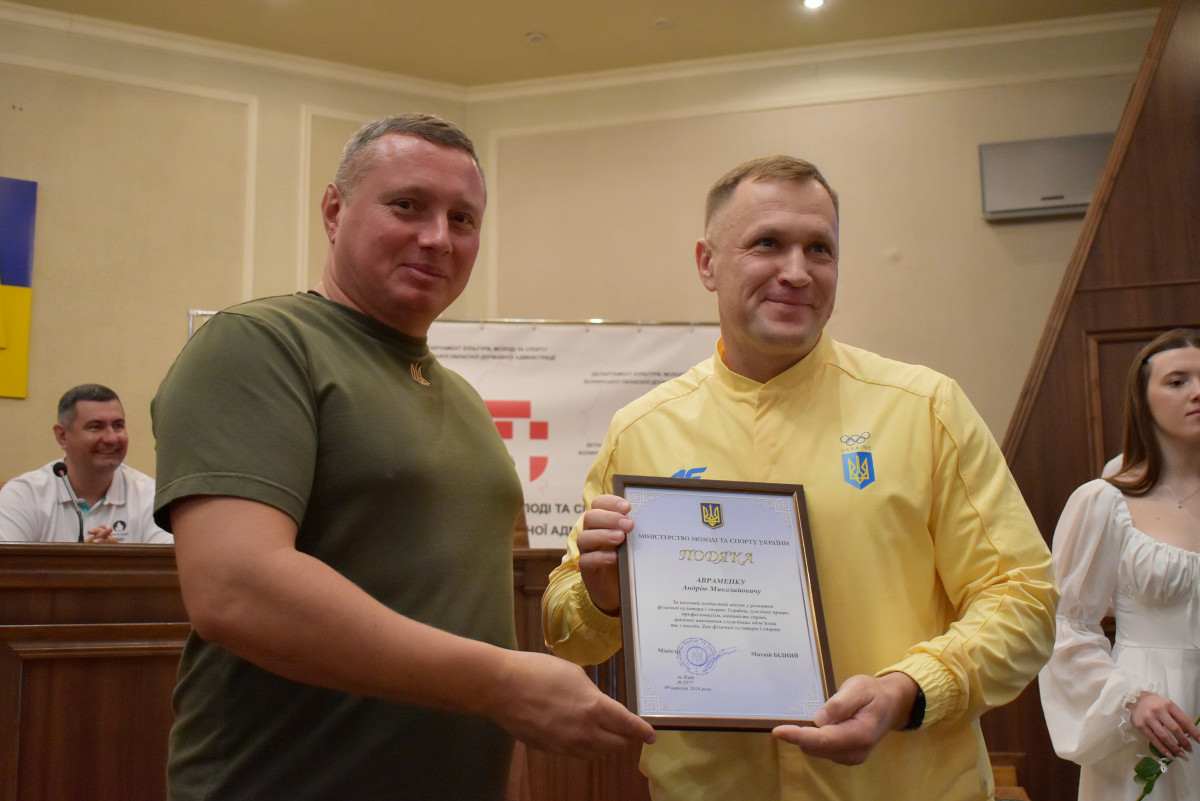 Подякою Міністерства молоді та спорту України за вагомий особистий внесок у розвиток фізичної культури і спорту України, сумлінну працю, професіоналізм, відданість справі, зразкове виконання службових обов’язків та з нагоди Дня фізичної культури і спорту нагороджено Андрія Авраменка, директора Волинської обласної школи вищої спортивної майстерності.