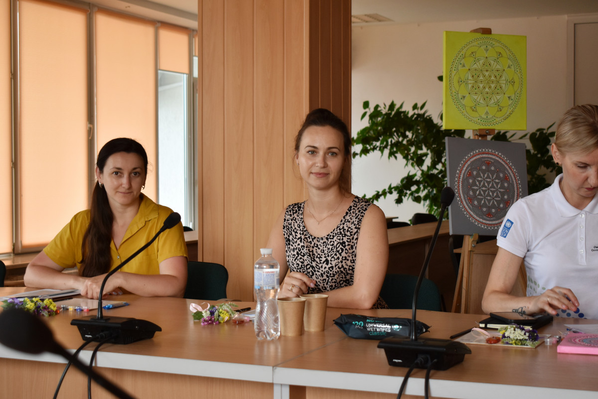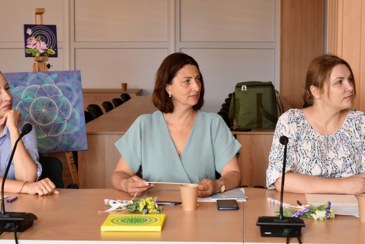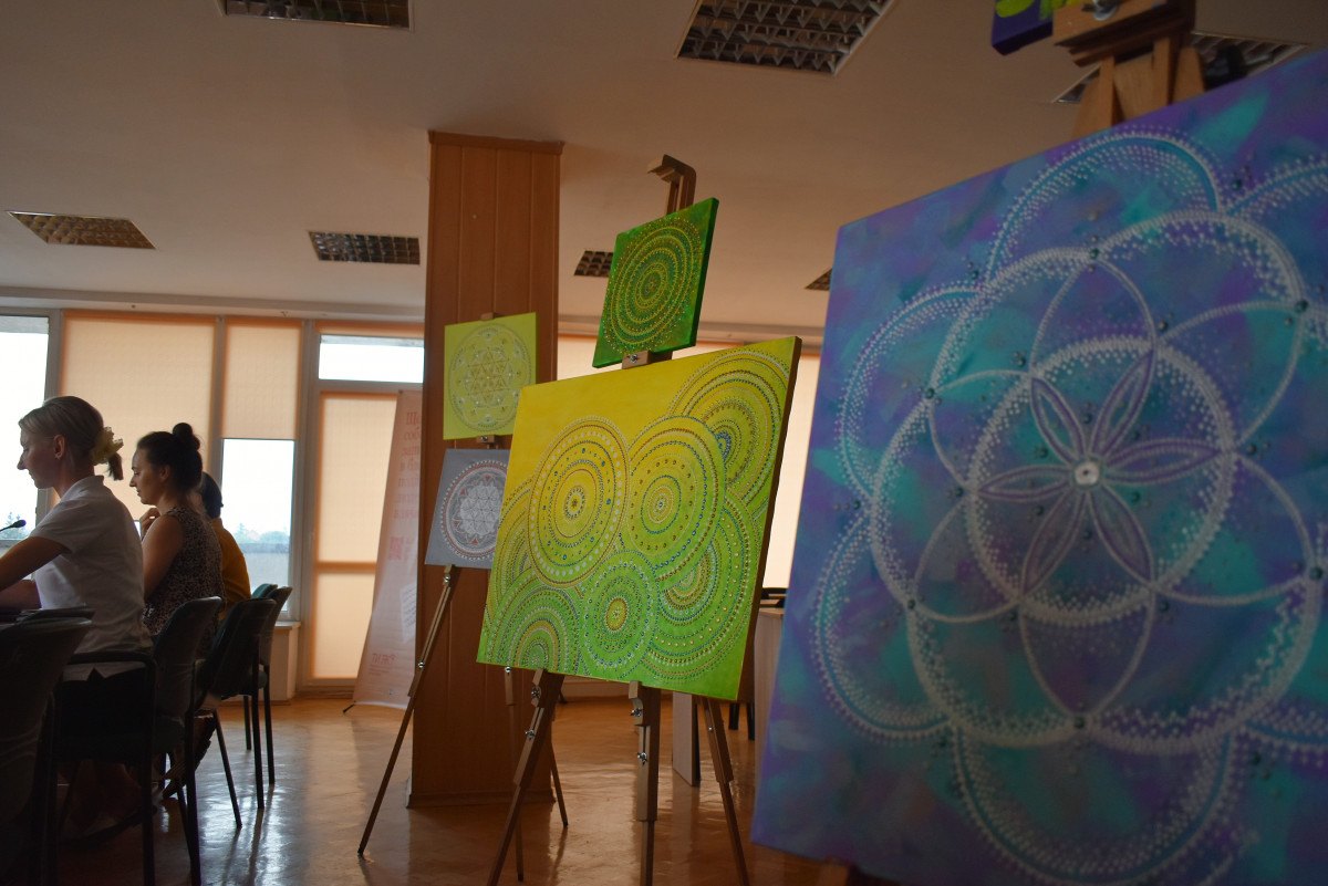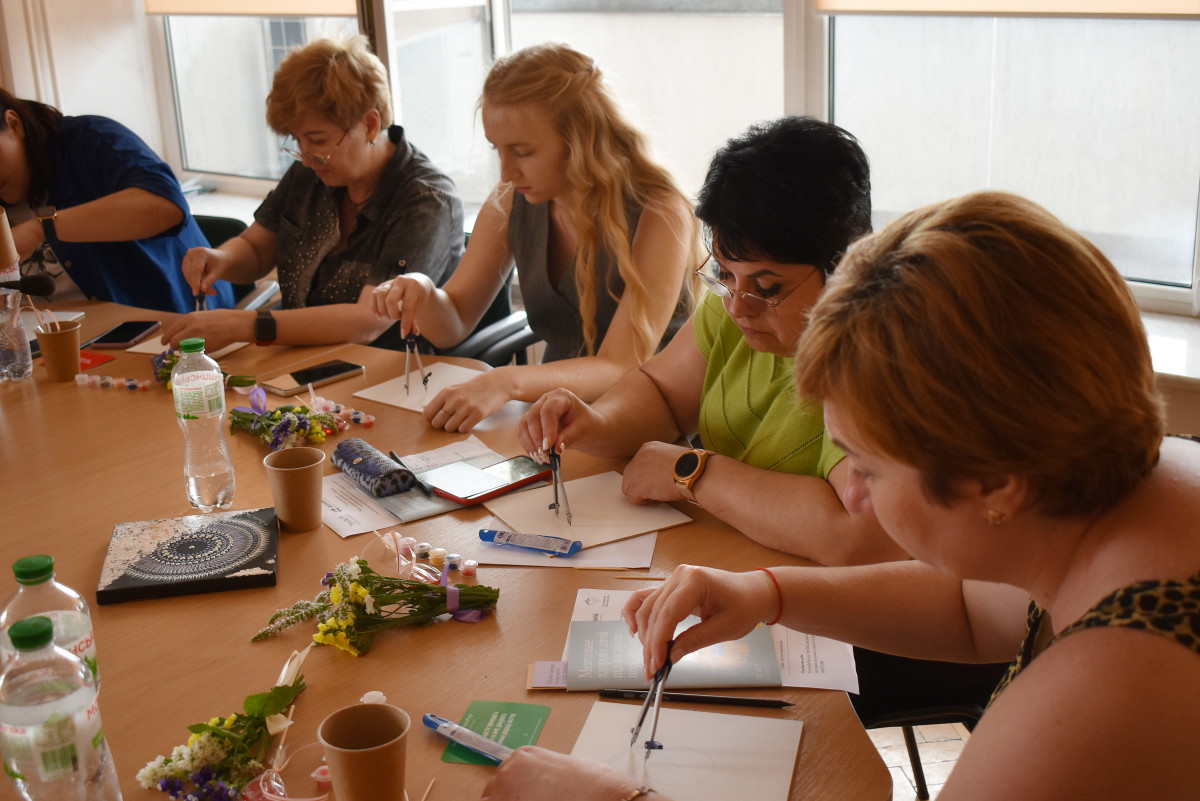 З цікавістю і гумором учасниці зустрічі долучились до створення мандали – кругових малюнків, що відображають психологічну та емоційну цілісність людей, які їх створюють. Надихала та зосереджувала на усвідомленні творчого процесу арт-терапевтка Юлія Гринчук.