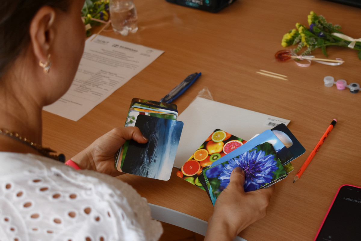 Тож важливою складовою воркшопу організатори обрали мистецтво. Про арт-терапію і творчість, як спосіб підтримки і відновлення ментального здоров’я розповіла керівниця благодійного фонду «Робимо добро дітям» Тетяна Дончева: