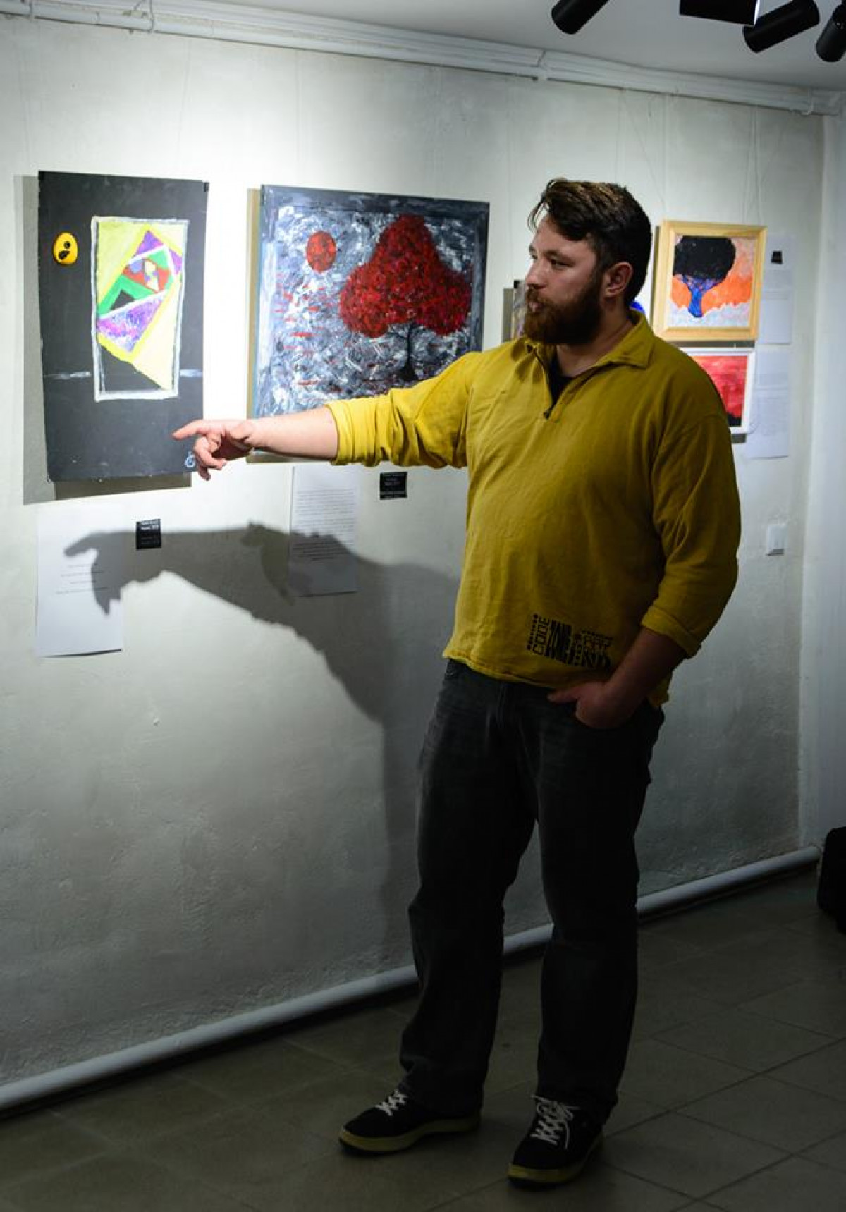 — Повернувшись зі Сходу і прокинувшись одного, такого ж закритого від усіх істот, мрячного ранку, спалахом зрозумів, що за довгий час, крім як повернутися назад в окопи, в мене з`явилося бажання придбати фарби, полотно. Я зішкріб останні кошти з підробітку, який на той час був – і придбав усе необхідне. І так розпочався мій перший досвід, – промовив художник.
