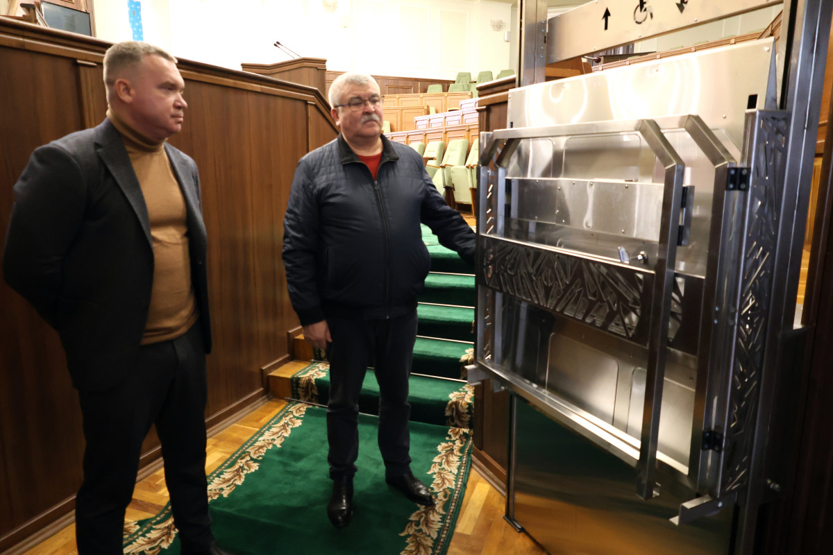Станом на сьогодні вже встановлені два підйомники – один до сесійного залу, інший безпосередньо в його приміщенні. Це дасть змогу людям, які пересуваються на кріслах колісних, безперешкодно брати участь у сесійних засіданнях та інших заходах. Роботу підйомників протестували в дії, технічні можливості перевірили фахівці управління містобудування та архітектури облдержадміністрації спільно з працівниками обласної ради.