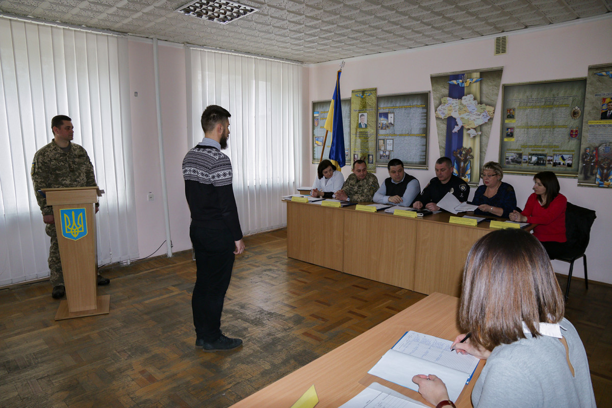 На навчальних місцях учасникам заходу продемонстрували порядок проведення засідання районної (міської) призовної комісії та вивчення керівних документів щодо призову громадян на строкову військову службу.