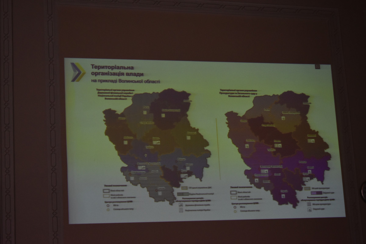 Українська асоціація районних та обласних рад за підтримки Програми Ради Європи «Децентралізація і реформа місцевого самоврядування в Україні» організувала круглий стіл на тему: «Перспективи формування нової системи адміністративно-територіального устрою Волині. Етап перший – аналіз існуючого стану». До обговорення долучилися заступник голови обласної державної адміністрації Валентин Цьось, голова обласної ради Ірина Вахович, представники Мінрегіону та УАРОР, голови райдержадміністрацій, ОТГ тощо.