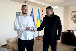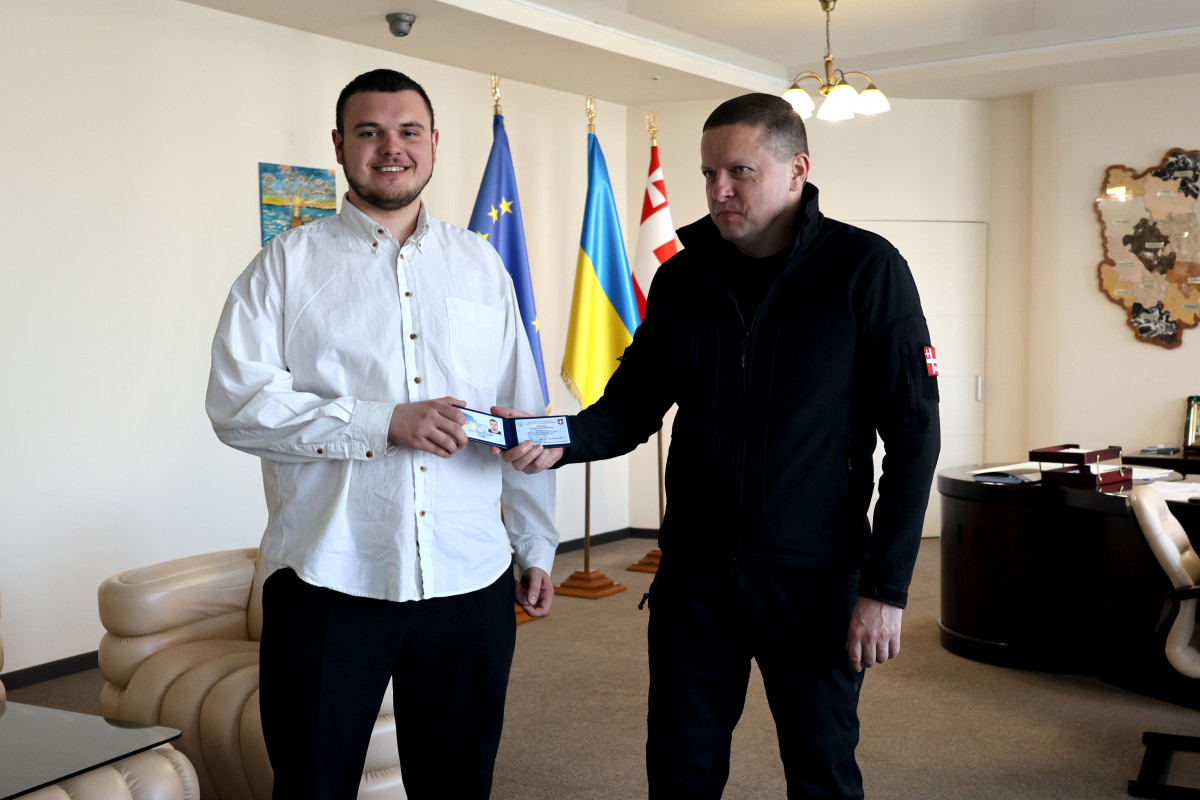 Іван Рудницький вручив посвідчення радника голови Волинської облдержадміністрації на громадських засадах з питань молодіжної політики Богдану Лебедю.