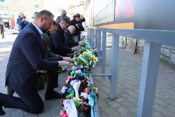 В обласному центрі Волині очільники влади, військові, ветерани та небайдужі волиняни принесли квіти до підніжжя «Пораненого солдата» на меморіальному комплексі «Вічна слава» та пам’ятного фотостенду учасників сучасної війни «Герої Небесної Сотні – Загинули за Єдність України».