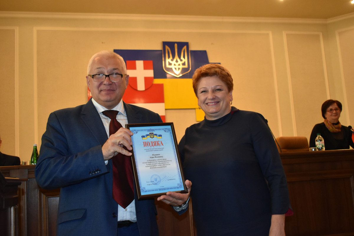 Також Світлана Мишковець вручила подяку голови обласної державної адміністрації за багаторічну сумлінну працю, високу професійність, активну громадську позицію та вагомий особистий внесок у вирішення проблем людей з обмеженими можливостями доктору педагогічних наук, професору Юрію Тулашвілі.