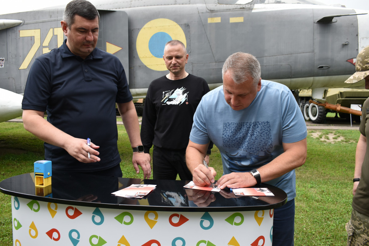 «Хочу подякувати нашим повітряним соколам, які боронять наше небо. Вони сміливі, мужні, незламні. Щоденно виходять на бойове чергування і охороняють наш спокій та наше життя», – відзначив Іван Люсак під час спецпогашення.