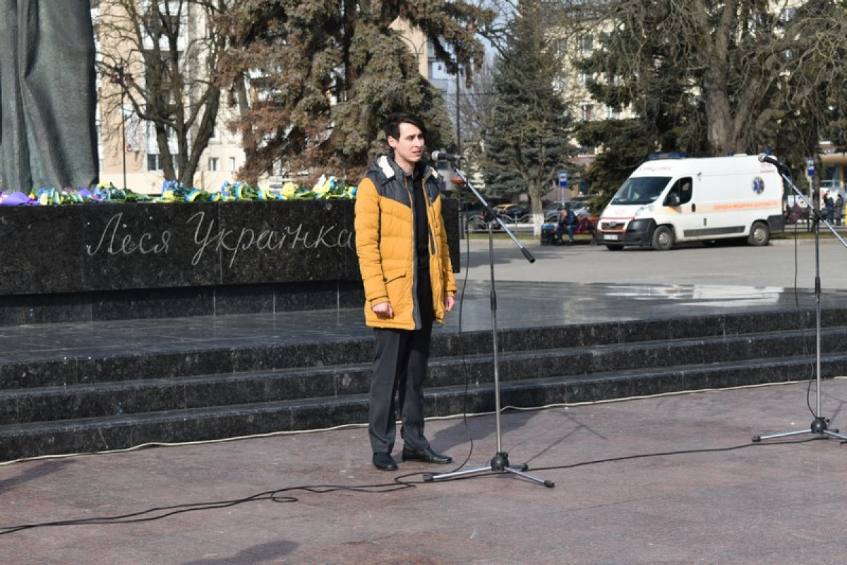 Опісля актор Волинського академічного обласного театру ляльок Вадим Хаїнський продекламував апокриф «Що дасть нам силу». Учасниця театральної студії «Бешкетники» Палацу культури Дарина Іщук, своєю чергою, прочитала «Лесині листи». До слова, дівчина учора зайняла 2 місце на обласному конкурсі читців «Мій любий краю», що відбувся у селі Колодяжне Ковельського району.