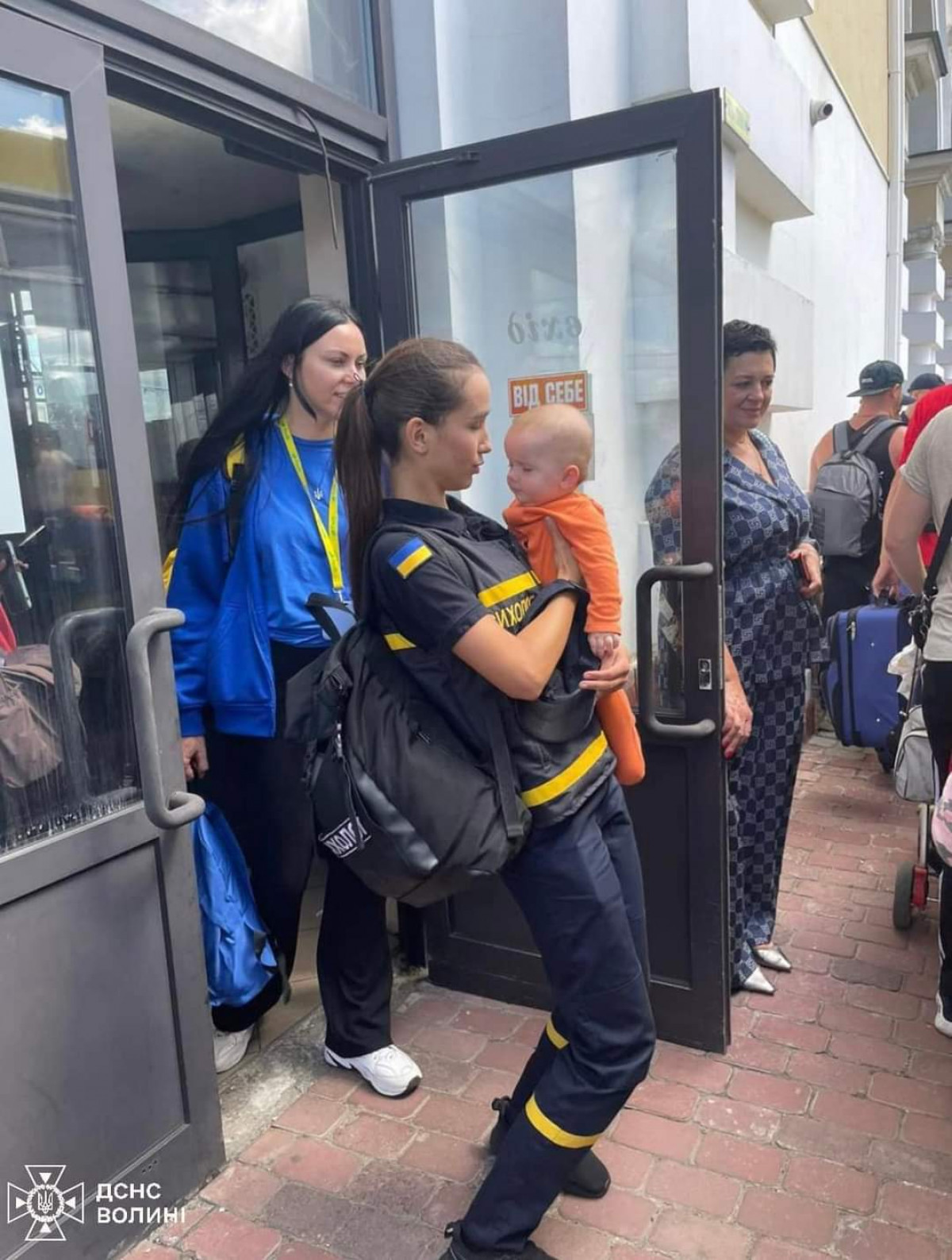 На Волині донецькі родини традиційно зустріли працівники обласного управління Державної служби надзвичайних ситуацій, соціальні працівники, психологи та поліцейські. Співробітники ДСНС супроводили людей від вагонів евакуаційного потягу до автобусів та надали психологічну допомогу тим, хто її потребував.