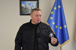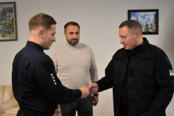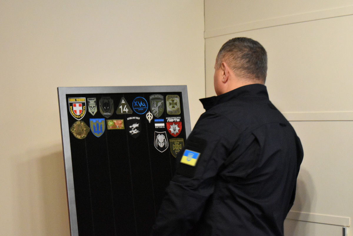 Начальник ОВА Юрій Погуляйко отримав шеврон від бійців полку особливого призначення патрульної поліції (стрілецький) «Хижак-1» за допомогу в матеріально-технічному забезпеченні.