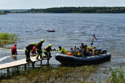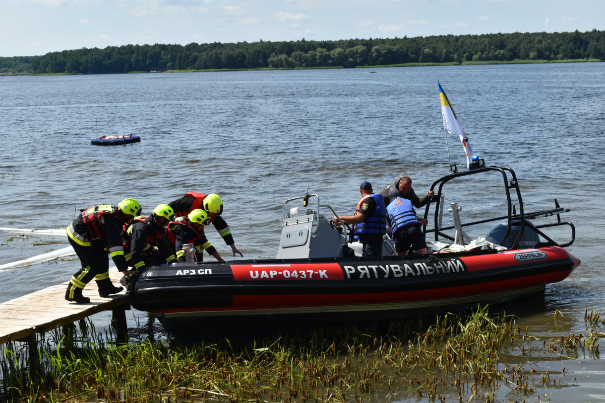 Фахівці підрозділів ДСНС обох областей відпрацювали сценарії з’їзду у воду легкового автомобіля, який перевозив мастило; перекидання у воду надувних човнів з людьми; перекидання катамарану із пасажирами та порятунок відпочивальника, якого віднесло від берега на матраці.