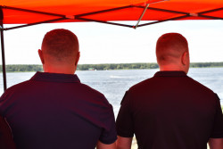 «Сьогодні разом із начальником Рівненської ОВА Віталієм Ковалем долучилися до спільних навчань волинських та рівненських підрозділів ДСНС з пошуку та рятування людей на водних об’єктах, що пройшли на Хрінницькому водосховищі», - повідомив начальник ОВА Юрій Погуляйко.