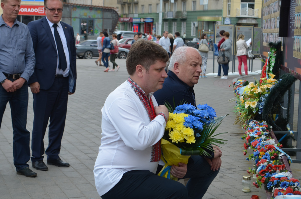 Після зустрічі в бібліотеці голова всеукраїнського «Меморіалу» разом з волинським колегою та заступником голови обласної державної адміністрації Денисом П’ятигорцем поклали квіти до стели загиблим героям Небесної Сотні та на війні на Сході України, а також до пам’ятника Лесі Українці.