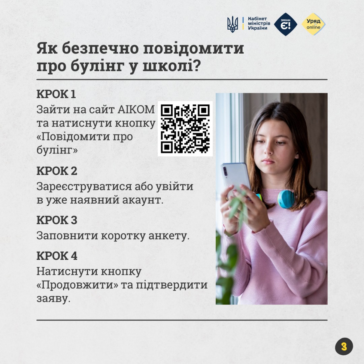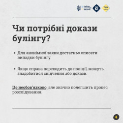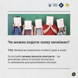 Про булінг у школі можна повідомити безпечно й анонімно через спеціальний сайт. Достатньо заповнити коротку анкету, щоб отримати допомогу.Як саме це зробити – дивіться в інфографіці.