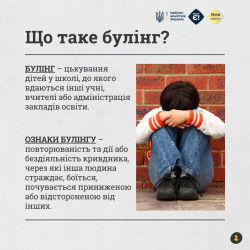 Булінг – цькування дітей у школі, до якого вдаються інші учні, вчителі або адміністрація закладів освіти.