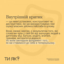 Внутрішній критик або ж самокритика інколи не дає нам нормально жити. Бо хто, як не ми, найкраще, найдеструктивніше себе покритикує, правда?