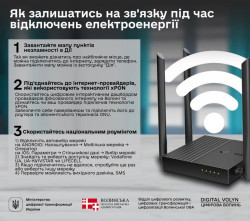 Відділ цифрового розвитку, цифрових трансформацій і цифровізації ОДА на основі інформації Міністерства цифрової трансформації України підготував для вас декілька рекомендацій, які допоможуть мати інтернет та зв’язок під час відключень електроенергії, що висвітлені на інфографіці нижче.