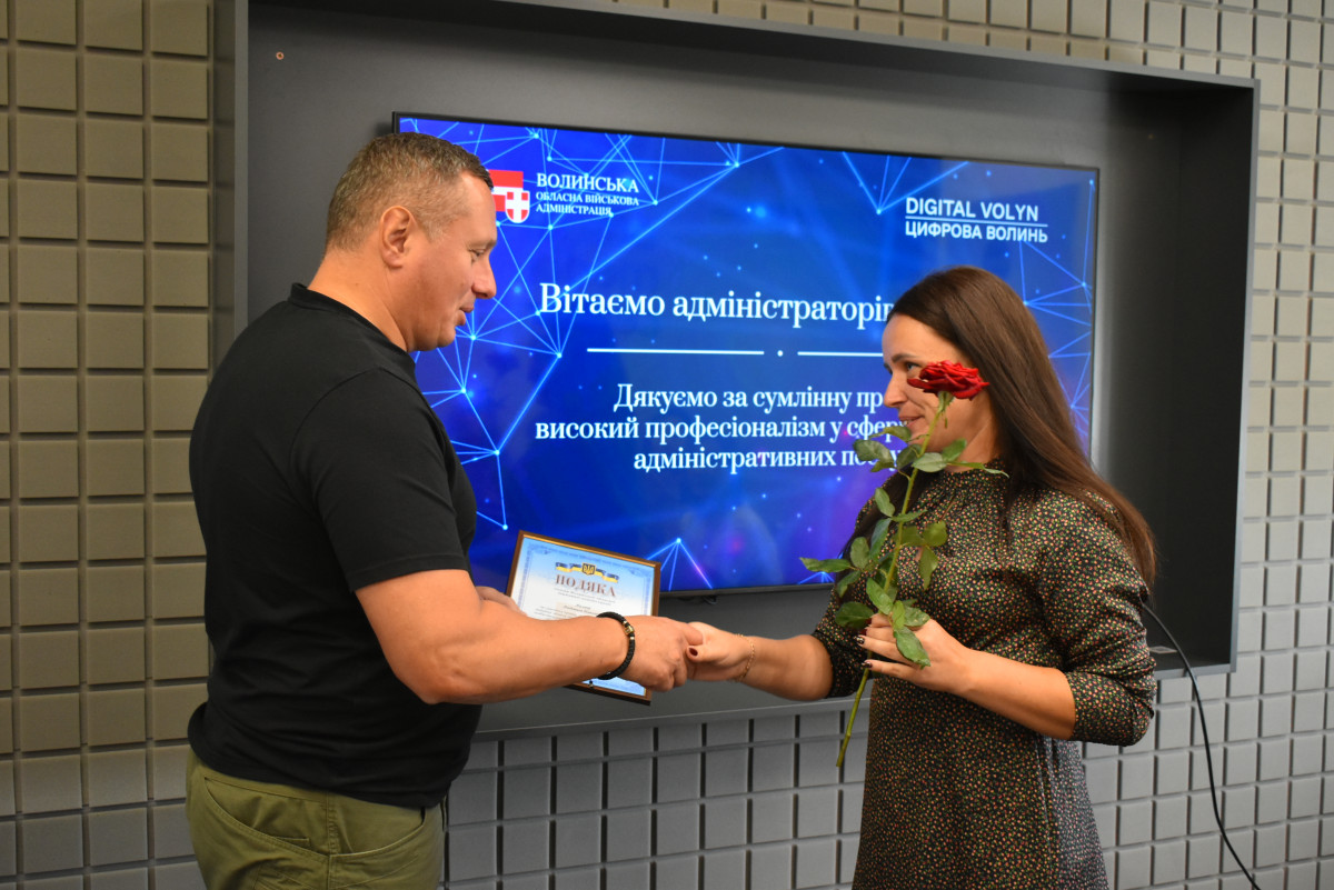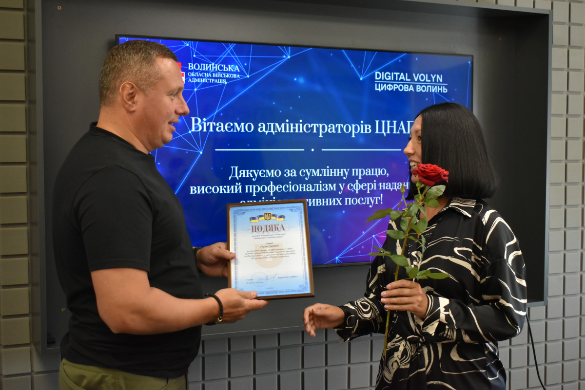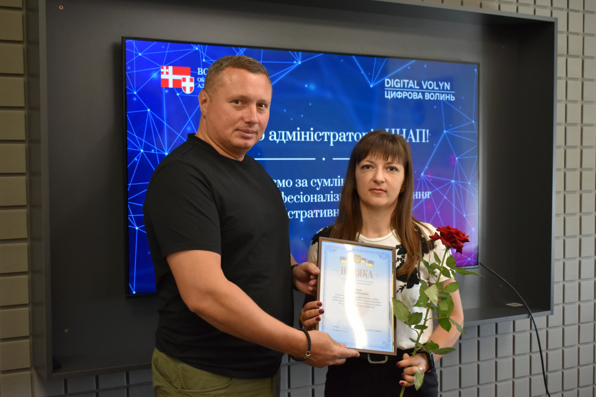 Сьогодні в обласному центрі Волині урочисто відзначили працівників Центрів надання адміністративних послуг. Очільник області Юрій Погуляйко та його заступниця з питань цифрового розвитку (CDTO) Вікторія Левчук особисто подякували за ефективну роботу адміністраторам волинських ЦНАПів.