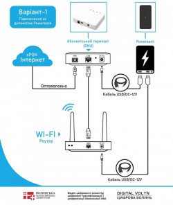 Команда відділуцифрового розвитку, цифрових трансформацій і цифровізації ОДА підготувала для вас інфографіку про те, як «заживити» Wi-Fi роутер за допомогою павербанку або джерела безперебійного живлення UPS.
