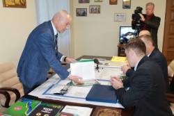 В стінах обласної державної адміністрації обговорили перспективи та можливості аграрної галузі Волині. На зустрічі були присутні заступник Міністра аграрної політики і продовольства України Віктор Шеремета, голова обласної державної адміністрації Олександр Савченко, директор департаменту агропромислового розвитку облдержадміністрації Юрій Горбенко та начальник Головного управління Держпродспоживслужби у Волинській області Богдан Лозинський. Спілкувалися посадовці сьогодні, 5 грудня 2018 року.