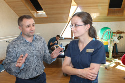 У реабілітаційній частині гостей зустрічає директор реабілітаційного центру – Світлана. Вона навчалася в Америці.