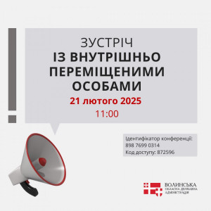 Запрошуємо вимушено переміщених українців, які проживають на Волині, на чергову зустріч з начальником Волинської ОВА Іваном Рудницьким.
