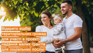 Триває відбір територіальних громад для участі в проєкті, що реалізується у співпраці з Дитячим фондом ООН (ЮНІСЕФ). Прогнозована кількість отримувачів грантів – 110, кожен з яких може отримати до 60 тисяч доларів США для розвитку соціальних послуг на своїй території.