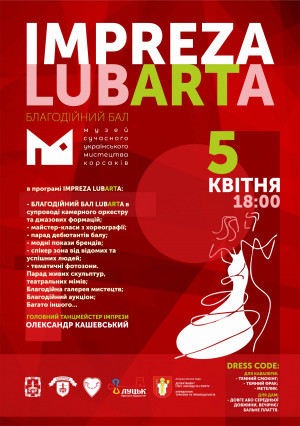 5 квітня 2019 року о 18:00 в музеї сучасного мистецтва Корсаків відбудеться благодійний бал «IMPREZA LUBARTA». Організатором заходу є Первинна профспілкова організація студентів Східноєвропейського національного університету імені Лесі Українки спільно з Всеукраїнським благодійним фондом «Серце до серця» та ГО «Альянс нового покоління».