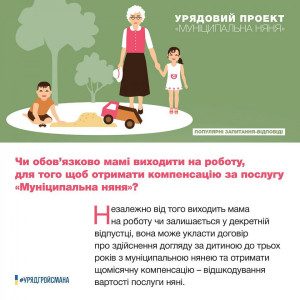 З 2019 року в Україні запрацював ще один вид соціальної допомоги новоспеченим батькам – «муніципальна няня». Це додаткова грошова допомога від Уряду молодим сім’ям.