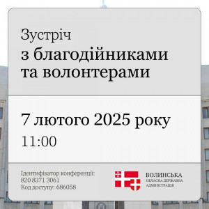 7 лютого 2025 року об 11:00 пройде зустріч керівництва ОВА з представниками благодійних фондів, громадський та релігійних організацій.