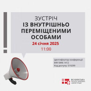 Запрошуємо вимушено переміщених українців, які проживають на Волині, на чергову зустріч із головою Волинської обласної військової адміністрації Іваном Рудницьким.