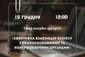 «Ефективна взаємодія бізнесу з правоохоронними та контролюючими органами» – тема наступної онлайн-зустрічі керівництва області з підприємцями.