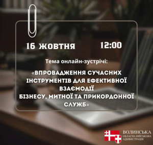 У четвер, 16 жовтня о 12:00 год. у Волинській ОВА відбудеться чергове онлайн-засідання в межах платформи «Діалог влади та бізнесу».