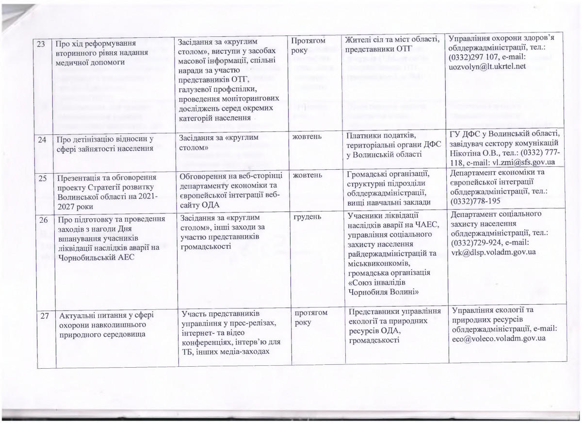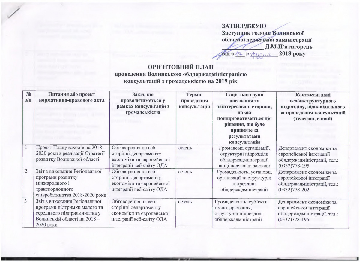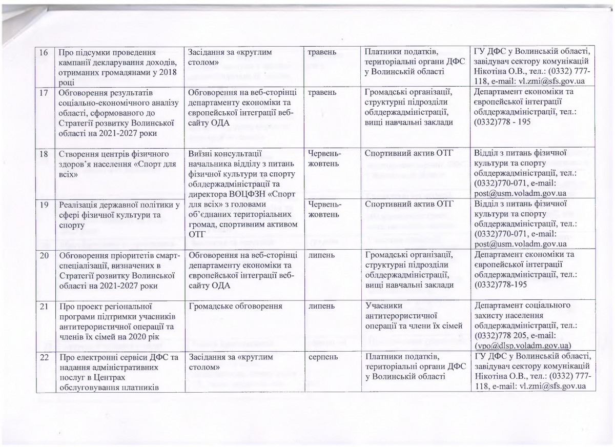 План заходів на 2018-2020 роки з реалізації Стратегії розвитку Волинської області