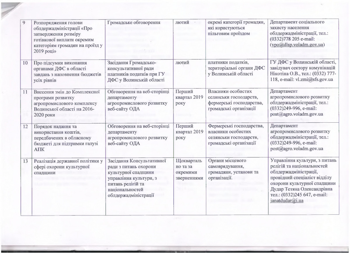 Звіти про результати проведення публічних громадських обговорень, 2019