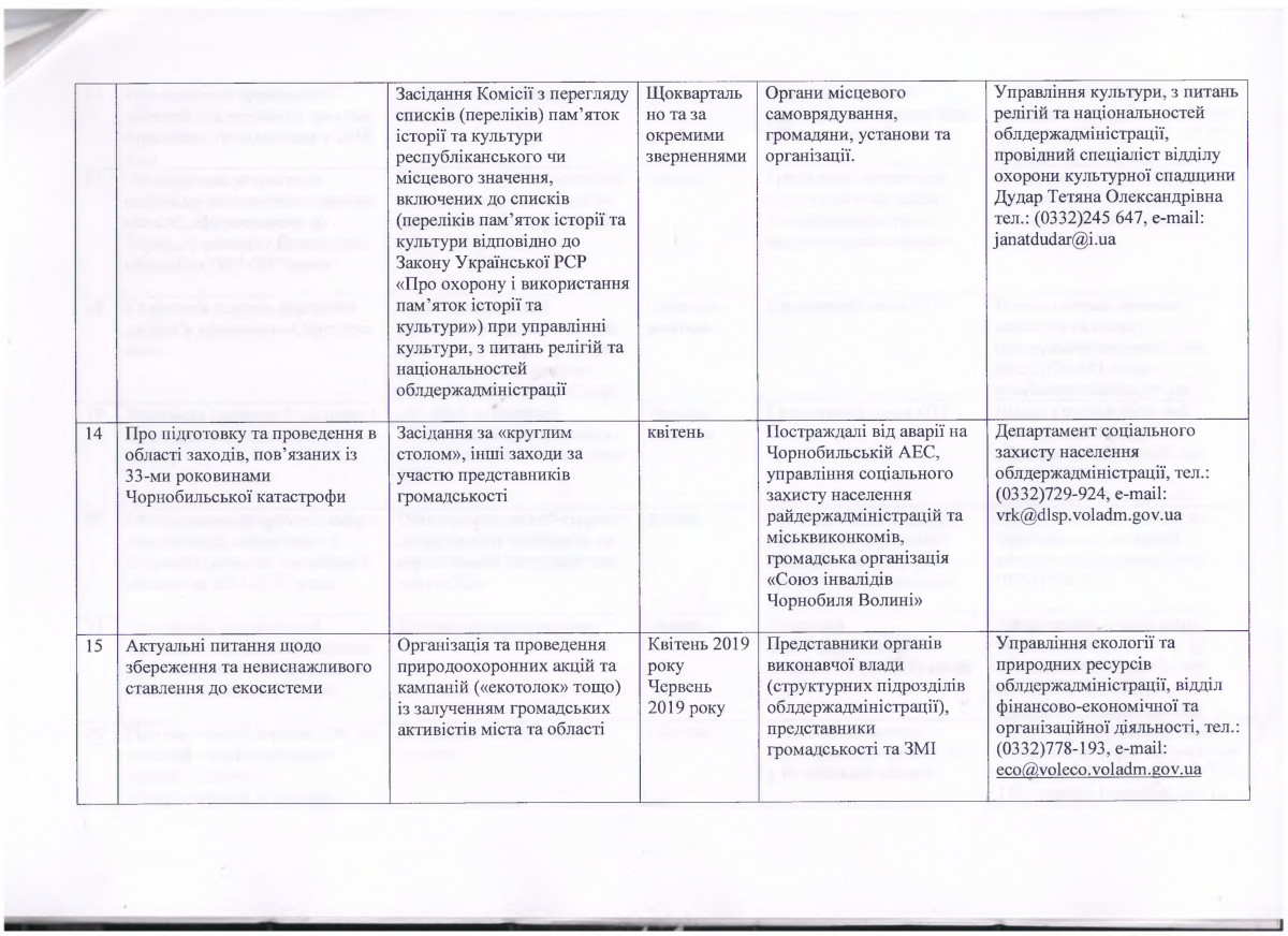 План проведення обласних заходів з нагоди 33-ї річниці Чорнобильської катастрофи